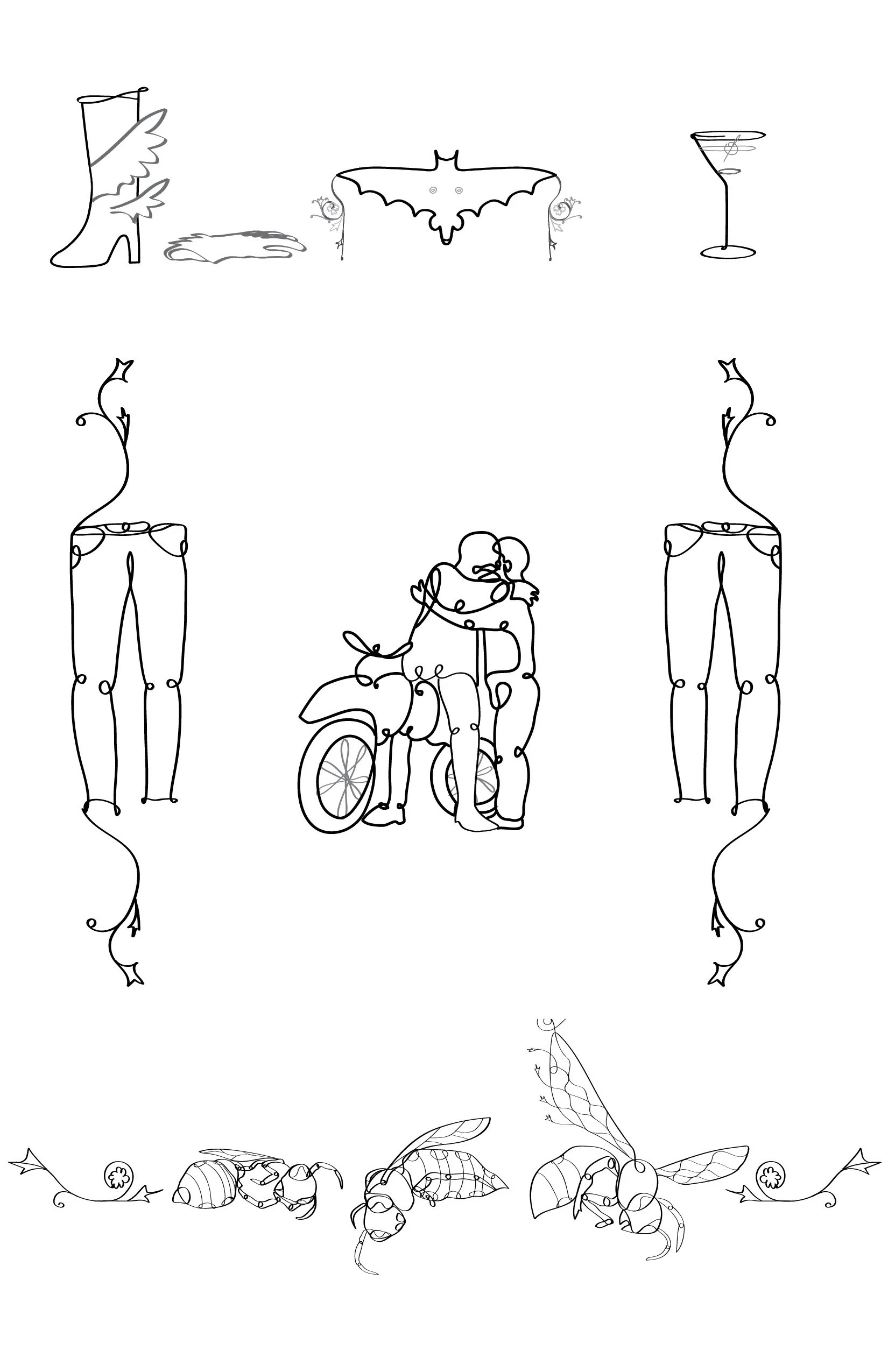 Below I collected almost every illustration into compositions that encapsulate some of the ideas of the book.