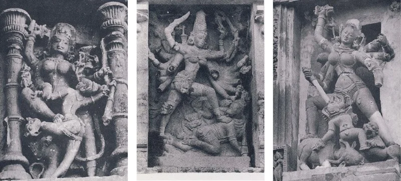 Sculptures of Mahishasura Mardini across India ranging from 10th- 11th Century CE. Images fromThe Divine and Demonaic by Carmel Berkson.Oxford University Press, 1995. plates #27, 26, and 24