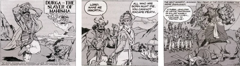 “Durga- the Slayer of Mahisha” Originally published in Tales of Durga. Amar Chithra Katha Comics. no.176. India Book House Pvt. Ltd., 1978., page 15